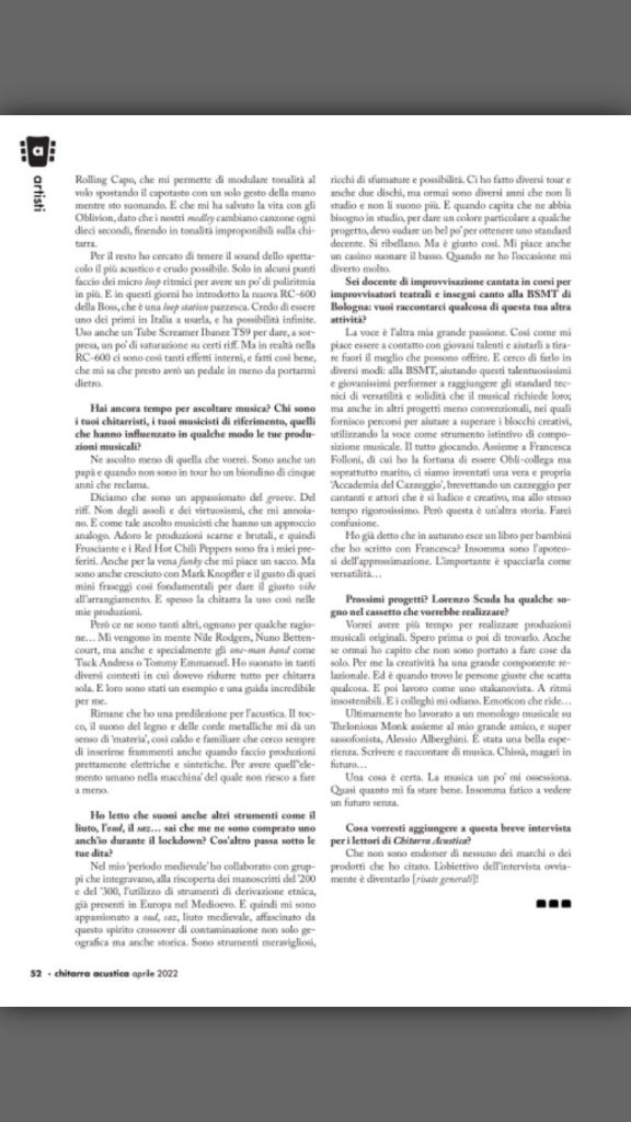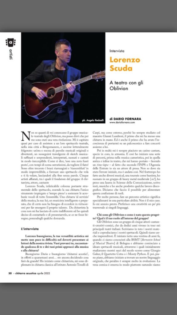 Intervista di Dario Fornara sul mensile Chitarra Acustica.